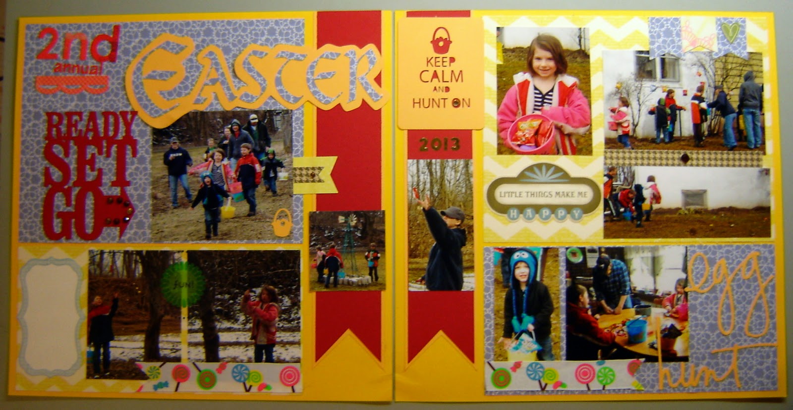 Tina created a wonderful scrapbook layout. She says: "I did another 2-page layout for Easter. I used The Creative Pointe’s cutting file: Easter Headings. I used the script with shadow file this year with the annual egg hunt that we put on at our place for the G-kids. This was cut with my Cameo and made a nice title for the layout. Never have any trouble cutting The Creative Pointe’s files. This set of files comes with 5 different headings and cam easily be measured down and cuts fine. If you're looking for an overall Easter file this is a good one." For more details and some closer shots of the layout, please visit Tina's blog: Tina's Scrap Corner